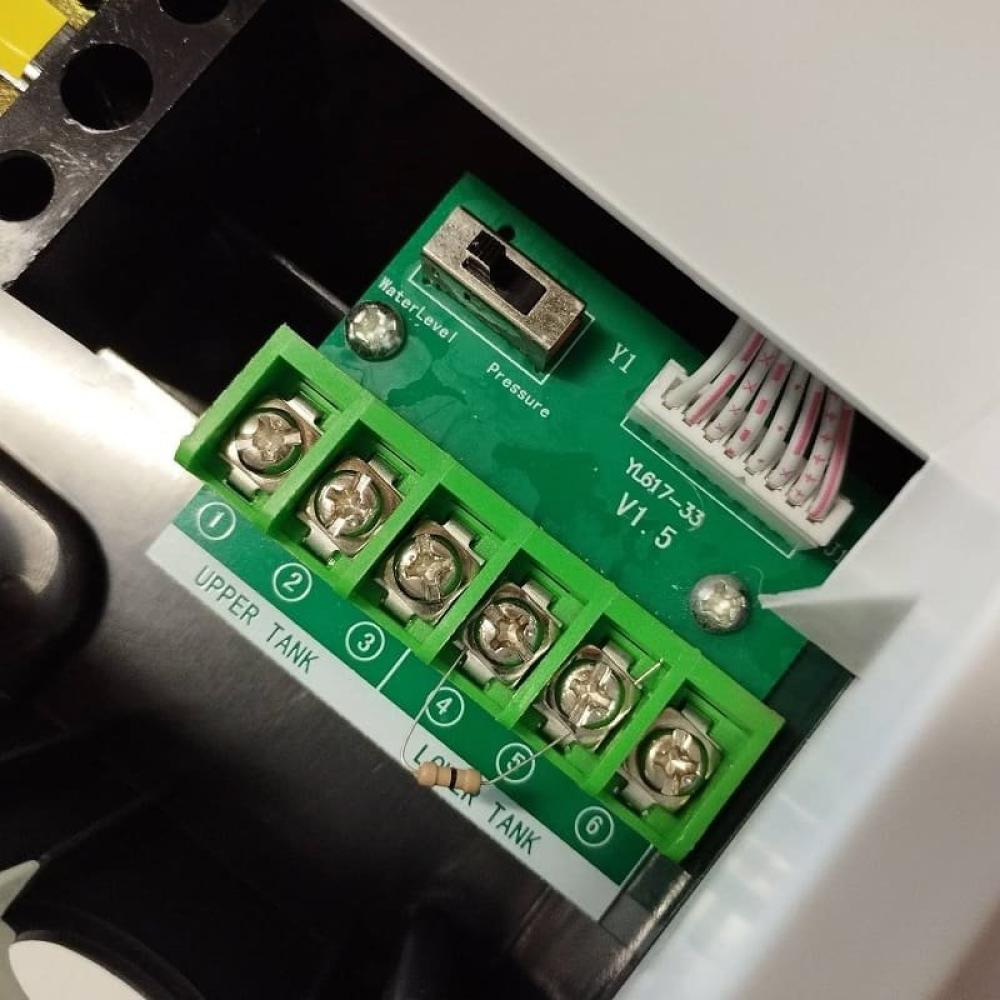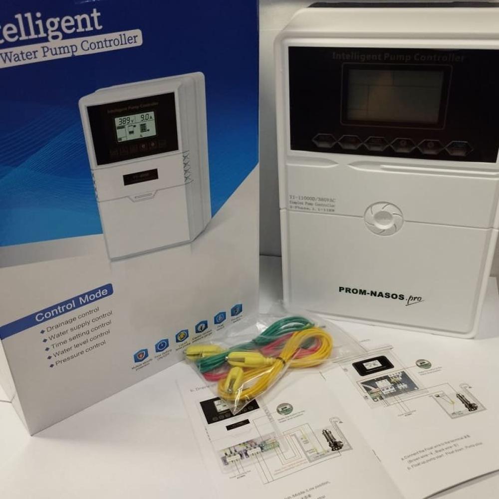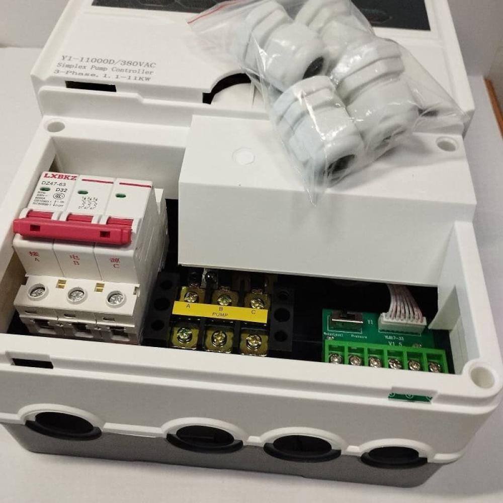 - визуализация: напряжения, двигателя, текущего, верхнего/нижнего состояния резервуара и сигналов тревоги. Верхний бак для контроля водоснабжения и нижний бак для контроля дренажа. Режим работы: переключатель АВТО/РУЧНОЙ. Индикация неисправности: отслеживание неисправностей, последние 10 причин неисправности дисплей, звуковая/световая сигнализация. Защита от длительного простоя насоса, путем кратковременного включения 1 раз в 15 дней.