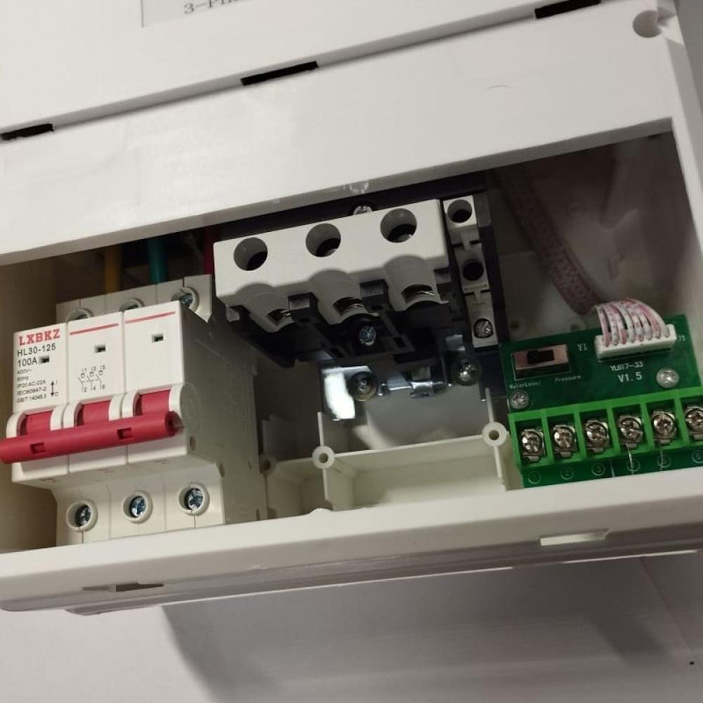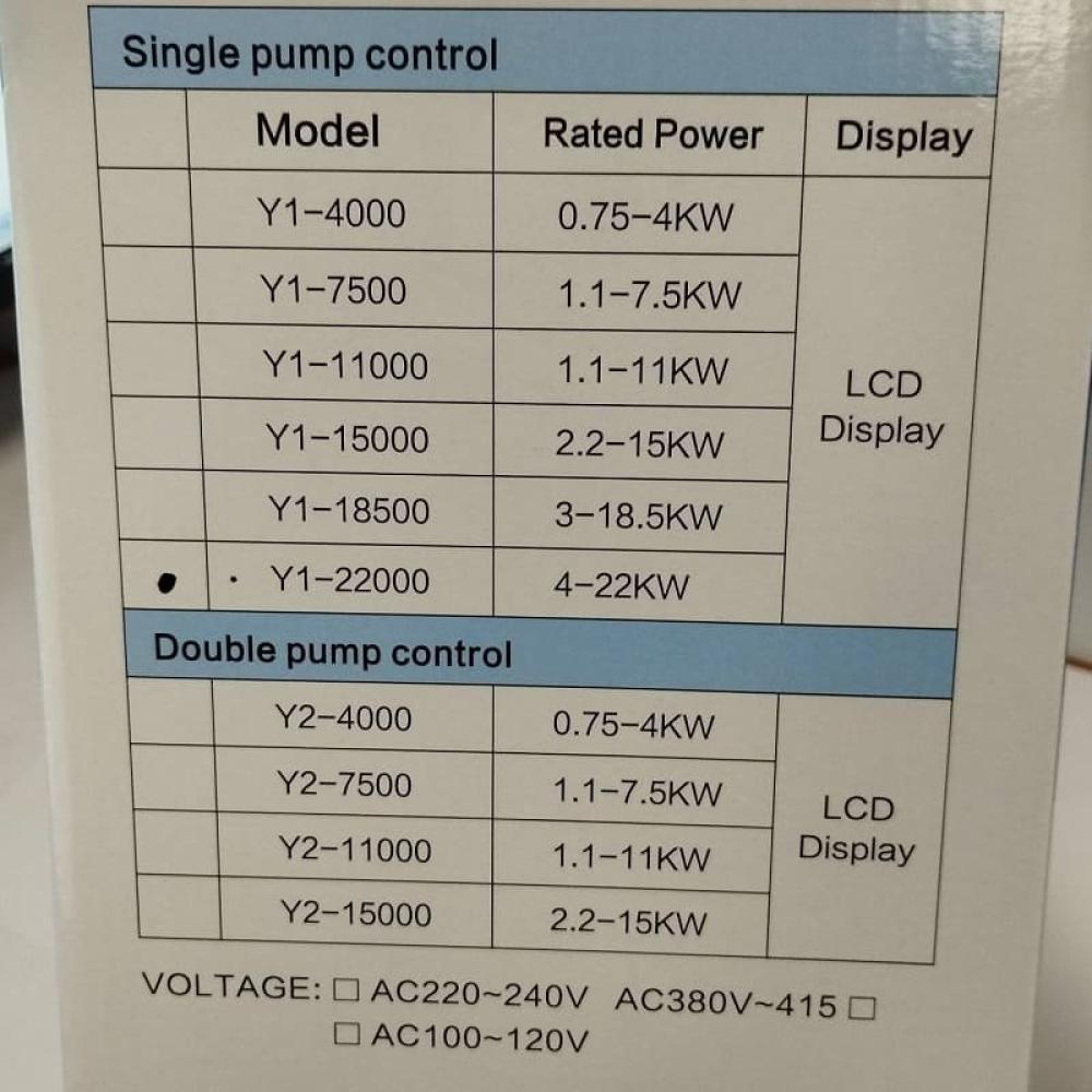 - визуализация: напряжения, двигателя, текущего, верхнего/нижнего состояния резервуара и сигналов тревоги. Верхний бак для контроля водоснабжения и нижний бак для контроля дренажа. Режим работы: переключатель АВТО/РУЧНОЙ. Индикация неисправности: отслеживание неисправностей, последние 10 причин неисправности дисплей, звуковая/световая сигнализация. Защита от длительного простоя насоса, путем кратковременного включения 1 раз в 15 дней.