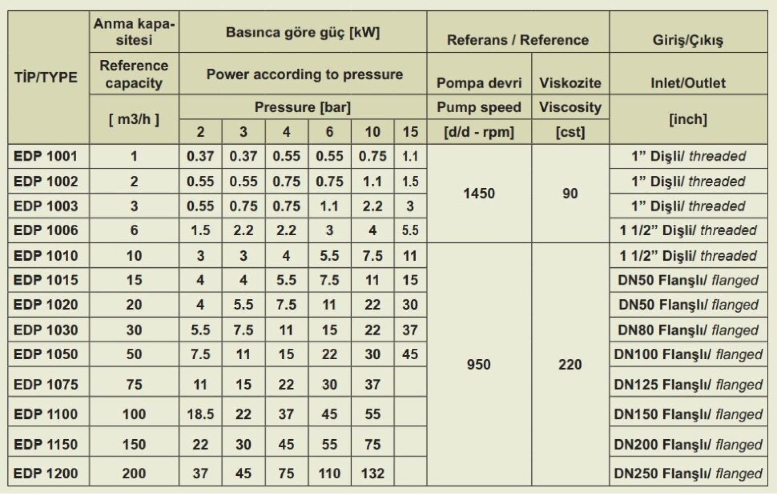 Шестеренные насосы EMSE серии EDP, в зависимости от материального исполнения проточной части (чугун, нержавеющая сталь) могут перекачивать вязкие жидкости, такие как мазут, полиэстерные составляющие, каустическая смола, масло, клей, минеральное масло, гель, смазка, шоколад, сырье для мыла, глюкоза, четвертичные эфиры, глицерин, каучук, воск, мед, меласса, нефть и многие другие жидкости.