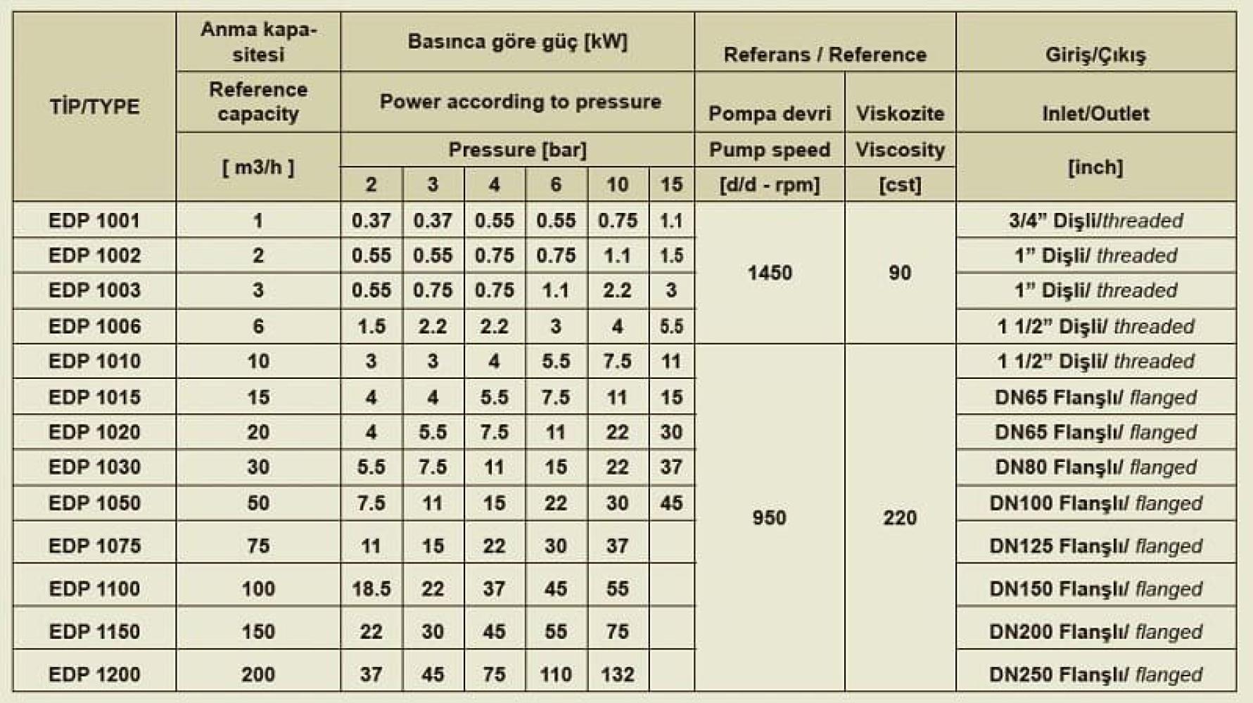 Шестеренные насосы EMSE серии EDP, в зависимости от материального исполнения проточной части (чугун, нержавеющая сталь) могут перекачивать вязкие жидкости, такие как мазут, полиэстерные составляющие, каустическая смола, масло, клей, минеральное масло, гель, смазка, шоколад, сырье для мыла, глюкоза, четвертичные эфиры, глицерин, каучук, воск, мед, меласса, нефть и многие другие жидкости.