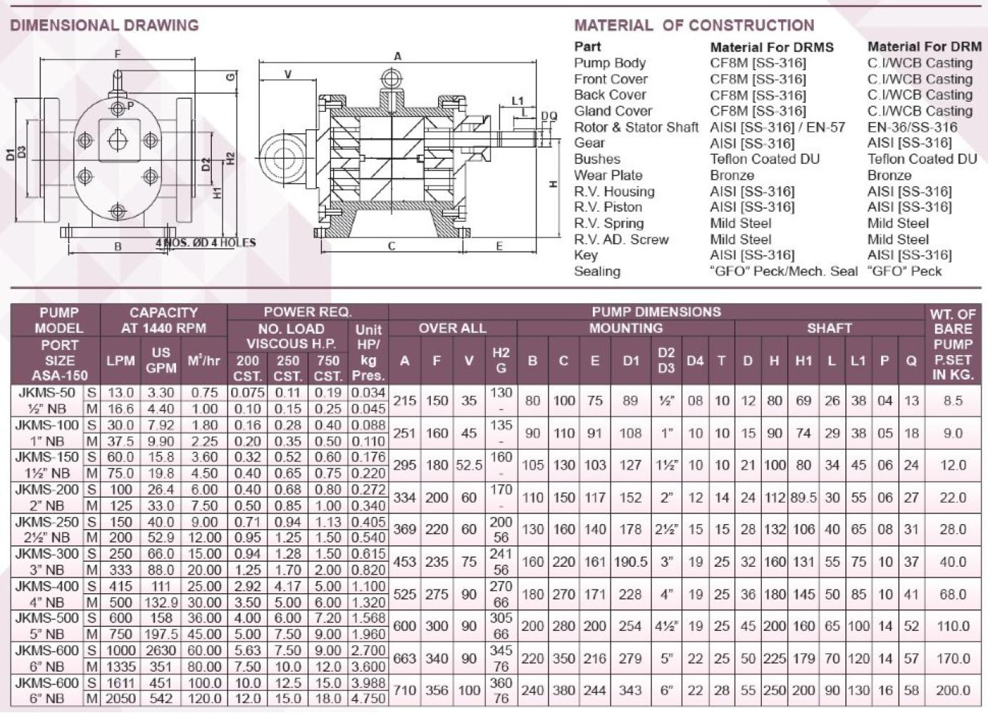 Корпус насосов серии JKMS изготовлен из нержавеющей стали (SS-316) путем литья. Благодаря конструкции из четырех частей его легко чистить и обслуживать. Валы и шестерни изготовлены из нержавеющей стали SS-316, поверхности деталей азотированы для увеличения срока службы.