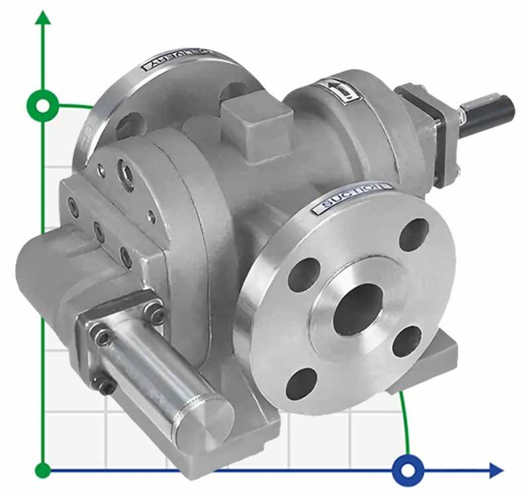 В данной серии насосов используется шевронный тип шестерни, что обеспечивает плавный ход, отсутствие шума при работе, устраняет осевые и радиальные нагрузки, что способствует увеличению срока службы как уплотнений так и насоса в целом.