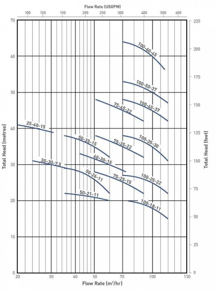 Модельный ряд включает насосы с диаметром выходного патрубка от 80 до 400, что позволяет получить производительность от 23 до 2400 кубометров в час с давлением до 64 м.вод.ст