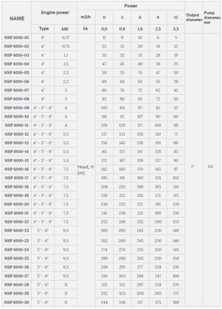 Аналог ЭЦВ 6-10-180. Многоступенчатый скважинный насос NSP 6" сконструирован для чистой воды, с возможным применением для морской и горячей воды (опционально устанавливаются высокотемпературные двигатели).