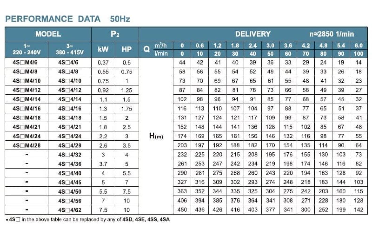Насос EDWIN серии 4SS применяется для водоснабжения скважин или водоемов, для бытового, гражданского и промышленного применения, для использования в садах и для орошения. Условия эксплуатации: наибольшая температура воды до +35°C, наибольшее содержание песка: 0,25%, малый диаметр скважины: 4".