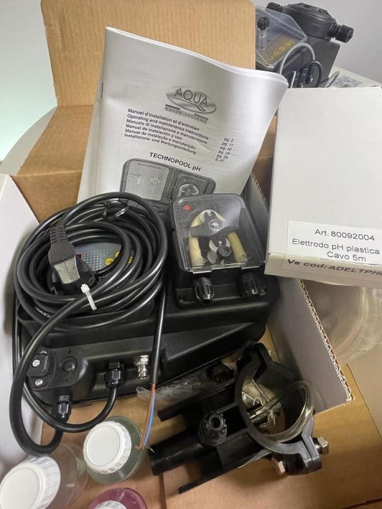 В комплект также входят: всасывающая и напорная трубки, буферные растворы, монтажный кронштейн, датчик pH, монтажный кронштейн с держателем датчика и впрыск для трубы DN50-63 (ADPSTC) и сетчатый фильтр для ножек.