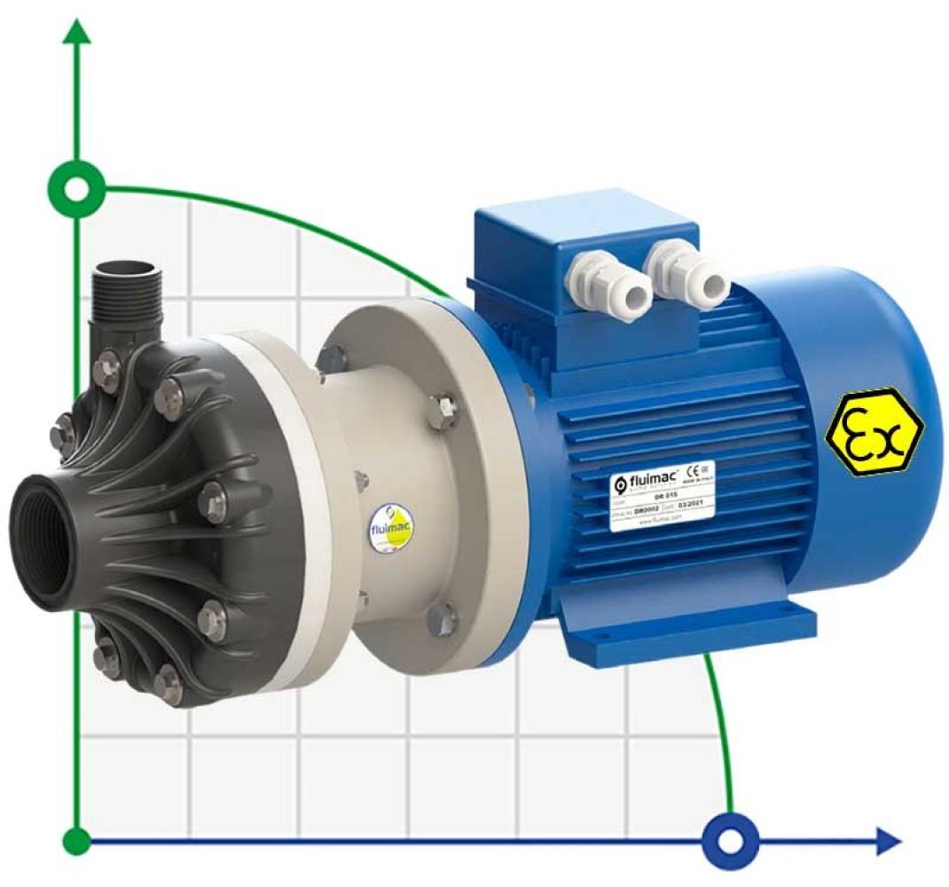 Химические центробежные пластиковые насосы серии DRAGON итальянской компании FLUIMAC – это высокопроизводительные насосы, приводимые в действие электродвигателем с прямым приводом для быстрой перекачки и отвода жидкости с расходом от 6 до 40 м3/час. Специальная полуоткрытая конструкция рабочего колеса позволяет непрерывно перекачивать даже грязную жидкость с относительной вязкостью до 500 cps. и мелкие взвешенные жесткие частицы. Центробежные насосы DRAGON имеют прочный корпус насоса и смотровое отверстие для подключения электродвигателя и проверки механического уплотнения. Полуоткрытое рабочее колесо установлено на валу насоса, соединенного с приводным валом электродвигателя. Механическое уплотнение вала расположено в задней части рабочего колеса. Механическое уплотнение DRAGON сконструировано с сильфоном из 100% чистого ПТФЭ для экстремально устойчивых к коррозии применений. Весь уплотнительный узел и его компоненты имеют механический привод для предотвращения проскальзывания на валу или втулке. Узел уплотнения устанавливается снаружи и находится под внутренним давлением. Центробежные насосы DRAGON следует устанавливать только с горизонтальным расположением вала при положительном напоре всасывания. Необходимо установить соответствующие устройства для предотвращения работы вхолостую, образования вихрей и возможного подсоса воздуха. Работа вхолостую или с пузырьками воздуха может привести к повреждению механического уплотнения.