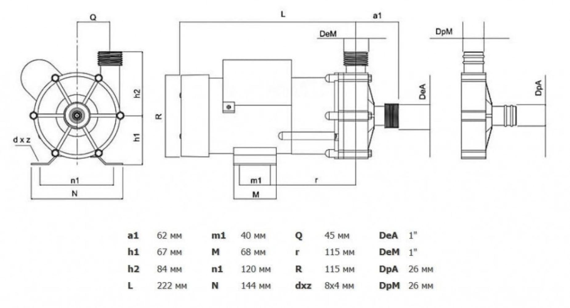 Одноступенчатый центробежный насос FMB имеет магнитный привод. Корпус изготовлен из термопластичных полимеров, обладающих повышенной прочностью. Внутренние материалы изготавливают из таких материалов как: керамика, карбон, фторированный эластомер. Использование таких материалов предотвращает контакт запчастей с рабочей жидкостью. Насосы данного типа имеют низкий уровень шума, а из-за отсутствия уплотнения пригодны к использованию в любых местах благодаря своей компактности. Насосы не имеют возможности работать всухую и требуют заполнения. Перекачка грязной жидкости или жидкости, содержащей взвешенные частицы, может сократить срок службы или ухудшить работу насоса.