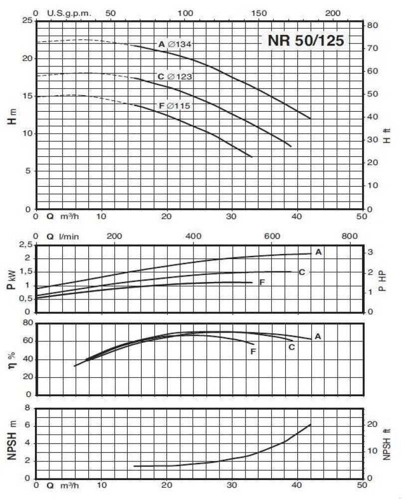- Использование в бытовой и промышленной сфере. При необходимости, работа с пониженным уровнем шума (n = 1450 об./мин.). Эксплуатационные ограничения на насосы CALPED NR: Температура жидкости от -10°C до +100°C. Температура окружающего воздуха не более 40°C. Манометрическая высота всасывания не более 7 м. Максимально допустимое конечное давление в корпусе насоса: 10 бар. Непрерывный режим эксплуатации. Электродвигатель к насосам CALPEDA NR: Асинхронный 4-полюсный электродвигатель, частота 50 Гц (частота вращения n = 1450 об./мин.). NR4: трехфазный 230/400 В (±10%). NR4M: однофазный 230 В (±10%).Асинхронный 2-полюсный электродвигатель, частота 50 Гц (частота вращения n = 2900 об./мин.). NR: трехфазный 230/400 В (±10%). NRM: однофазный 230 В (±10%).Изоляция класса "F". Защитное устройство IP 54. Конструкция в соответствии со стандартом IEC 60034. Специальные исполнения под заказ насосов CALPEDA NR. Для работы с другими напряжениями. Для работы с частотой 60 Гц. С защитным устройством IP 55. Специальные механические уплотнения. Для работы с жидкостями или в окружающей среде с повышенной температурой. Насос можно укомплектовать его всем необходимым для монтажа. А также получить квалифицированную консультацию у специалиста по подключению насоса, техобслуживанию, спуске воздуха узнать схему конструкции системы для бесперебойной работы при отсутствии электричества и другое.