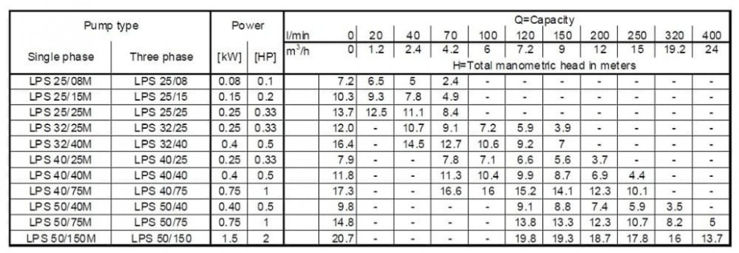 Технические данные: производительность до 25 м3/ч; высота подачи до 21 м; температура перекачиваемой жидкости: -10°C ÷ 100°C; максимальное давление: 0,4 МПа.
