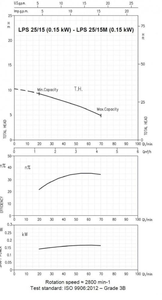 Технические данные: производительность до 25 м3/ч; высота подачи до 21 м; температура перекачиваемой жидкости: -10°C ÷ 100°C; максимальное давление: 0,4 МПа.