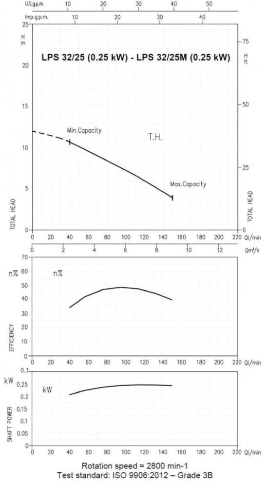 Технические данные: производительность до 25 м3/ч; высота подачи до 21 м; температура перекачиваемой жидкости: -10°C ÷ 100°C; максимальное давление: 0,4 МПа.