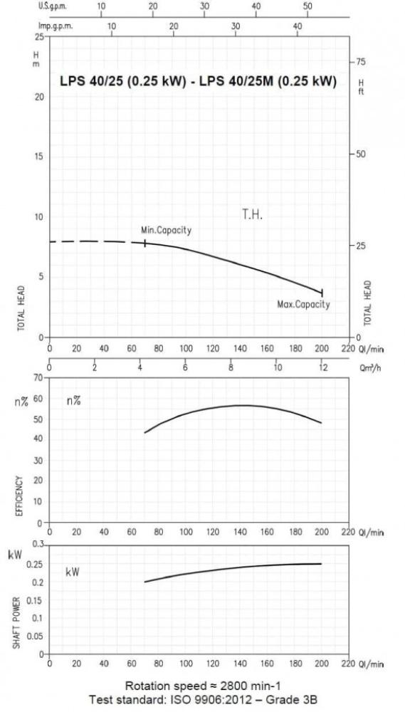 Технические данные: производительность до 25 м3/ч; высота подачи до 21 м; температура перекачиваемой жидкости: -10°C ÷ 100°C; максимальное давление: 0,4 МПа.