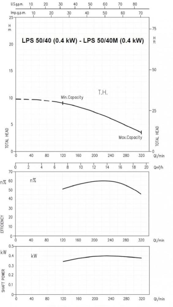 Технические данные: производительность до 25 м3/ч; высота подачи до 21 м; температура перекачиваемой жидкости: -10°C ÷ 100°C; максимальное давление: 0,4 МПа.