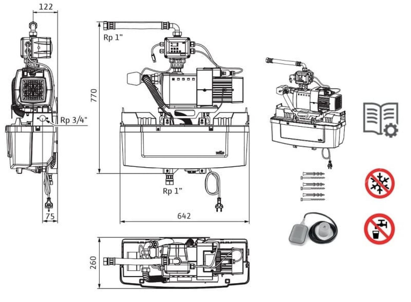 - гигиена снабжается обратным клапаном и баком в соответствии с DIN 1989 и EN 1717; Готов к подключению модуль компактной конструкции, состоящий из следующих компонентов: