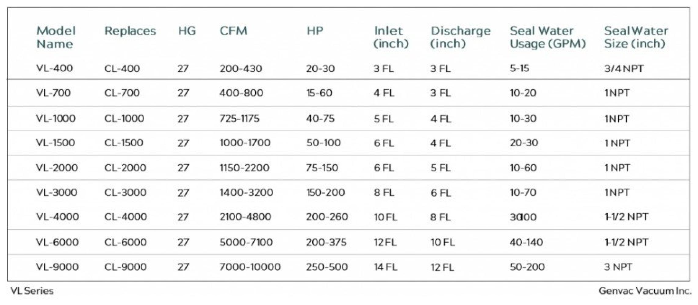 Вакуумные насосы GENVAC серии VL это прямая замена классической серии CL. Стандартная конструкция насоса чугун с сальником. Опционально