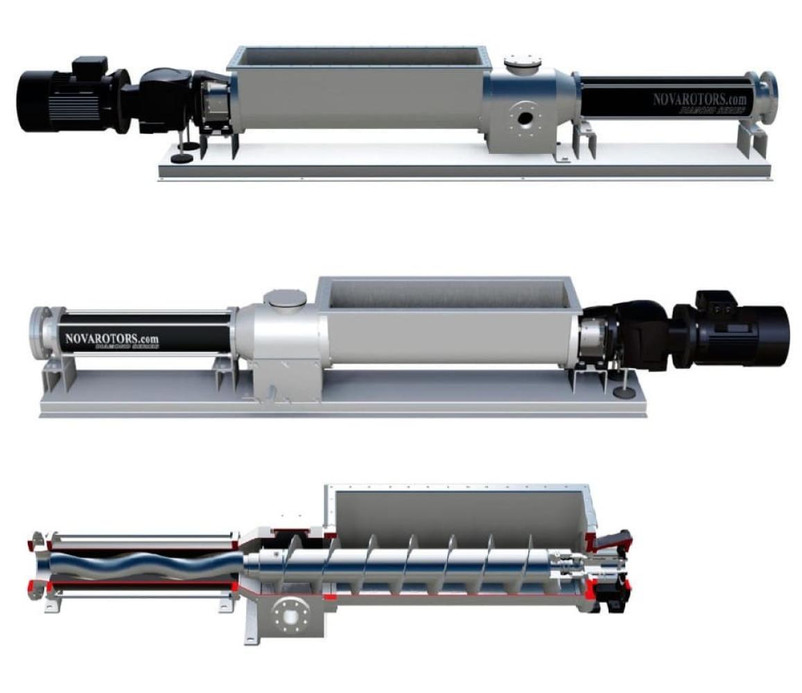 Винтовые насосы NOVA ROTORS серии DHS-T и JHS-T с бункером и подающим шнеком для прямой подачи продукта к гидравлической части являются идеальным решением для перекачивания вязких и нетекучих жидкостей с высоким содержанием твердых частиц.