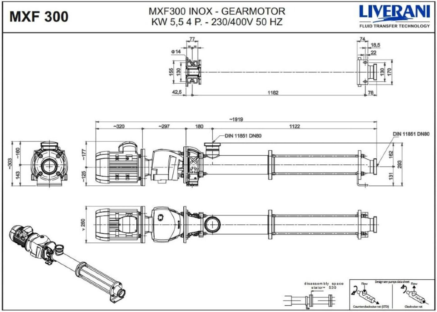 Одновинтовые насосы с фиксированным статором серии MXF производителя Liverani с корпусом из нержавеющей стали предназначены для перекачки пищевых и химических жидкостей, вязких, густых жидкостей, а также жидкостей с твердыми частицами в суспензии. Серия санитарных насосов MXF соответствует современным стандартам и идеально подходит для пищевой, фармацевтической, химической и косметической промышленности. Полная санитарная конструкция, соответствующая стандартам EHEDG и 3A, обеспечивает максимальную санитарную обработку. Эти насосы имеют наивысший рейтинг процедур «Clean in Place» (очистка на месте) и «Sterilisation in Place» (стерилизация на месте). Геометрия насосов разработана специально для полного слива и избегания мертвых зон. Каждый отдельный компонент производится с максимальным вниманием к деталям обработки и тщательно очищается. Как и детали, контактирующие с продуктом, блочная конструкция, основание/тележка также изготовлены из нержавеющей стали. Доступные фитинги включают DIN 11851, Clamp, RJT, SMS и, наконец, фитинги Garolla и Macon для винодельческой промышленности.