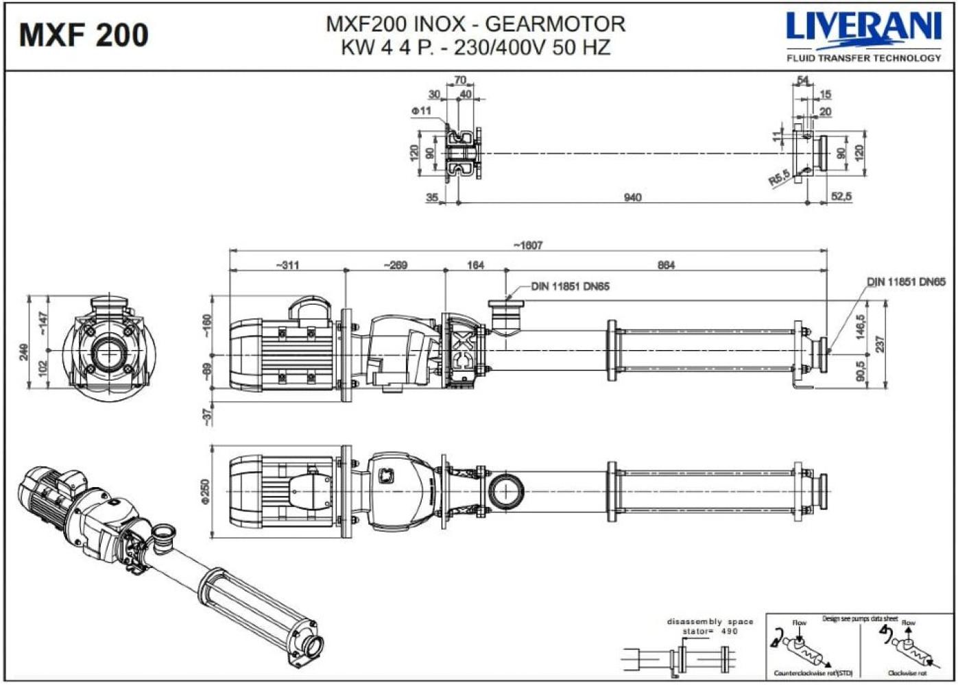 Одновинтовые насосы с фиксированным статором серии MXF производителя Liverani с корпусом из нержавеющей стали предназначены для перекачки пищевых и химических жидкостей, вязких, густых жидкостей, а также жидкостей с твердыми частицами в суспензии. Серия санитарных насосов MXF соответствует современным стандартам и идеально подходит для пищевой, фармацевтической, химической и косметической промышленности. Полная санитарная конструкция, соответствующая стандартам EHEDG и 3A, обеспечивает максимальную санитарную обработку. Эти насосы имеют наивысший рейтинг процедур «Clean in Place» (очистка на месте) и «Sterilisation in Place» (стерилизация на месте). Геометрия насосов разработана специально для полного слива и избегания мертвых зон. Каждый отдельный компонент производится с максимальным вниманием к деталям обработки и тщательно очищается. Как и детали, контактирующие с продуктом, блочная конструкция, основание/тележка также изготовлены из нержавеющей стали. Доступные фитинги включают DIN 11851, Clamp, RJT, SMS и, наконец, фитинги Garolla и Macon для винодельческой промышленности.