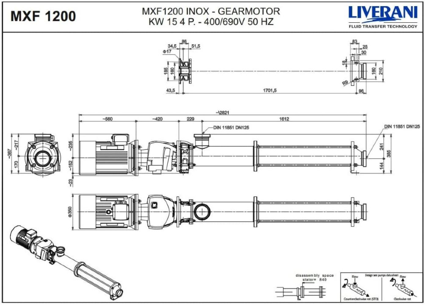 Одновинтовые насосы с фиксированным статором серии MXF производителя Liverani с корпусом из нержавеющей стали предназначены для перекачки пищевых и химических жидкостей, вязких, густых жидкостей, а также жидкостей с твердыми частицами в суспензии. Серия санитарных насосов MXF соответствует современным стандартам и идеально подходит для пищевой, фармацевтической, химической и косметической промышленности. Полная санитарная конструкция, соответствующая стандартам EHEDG и 3A, обеспечивает максимальную санитарную обработку. Эти насосы имеют наивысший рейтинг процедур «Clean in Place» (очистка на месте) и «Sterilisation in Place» (стерилизация на месте). Геометрия насосов разработана специально для полного слива и избегания мертвых зон. Каждый отдельный компонент производится с максимальным вниманием к деталям обработки и тщательно очищается. Как и детали, контактирующие с продуктом, блочная конструкция, основание/тележка также изготовлены из нержавеющей стали. Доступные фитинги включают DIN 11851, Clamp, RJT, SMS и, наконец, фитинги Garolla и Macon для винодельческой промышленности.